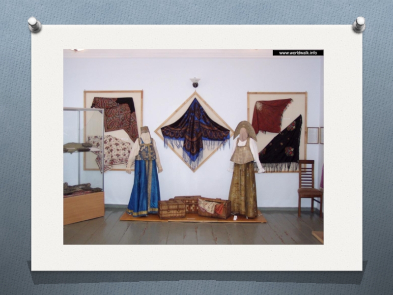 В музее собран огромный материал по истории народных промыслов городецкой Земли: глухая домовая резьба, расписные донца Прялок, золотное шитьё, пряничные доски.