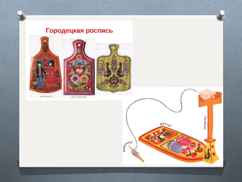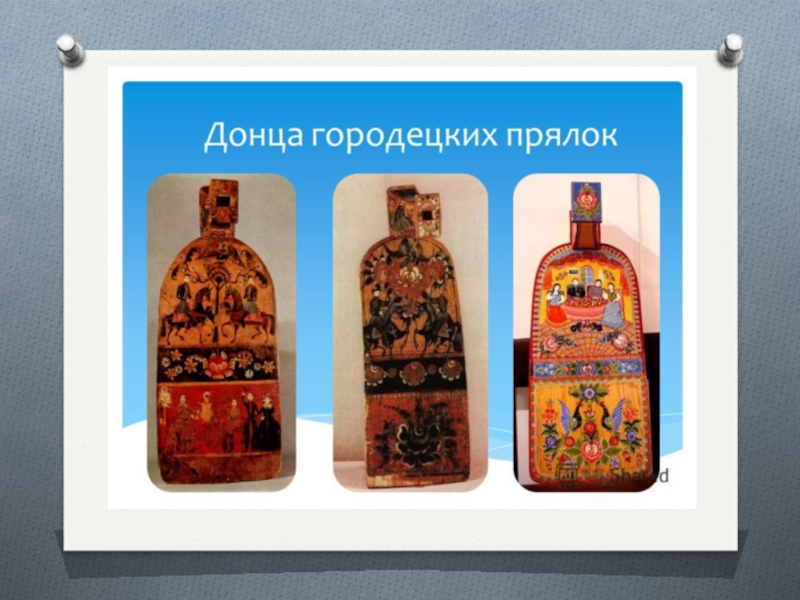 В 1870-х годах появилась «городецкая роспись» — сюжетная роспись на прялках.
