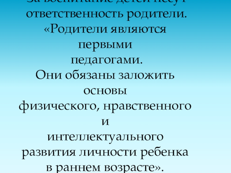 За воспитание детей несут ответственность родители. «Родители являются первыми педагогами. Они