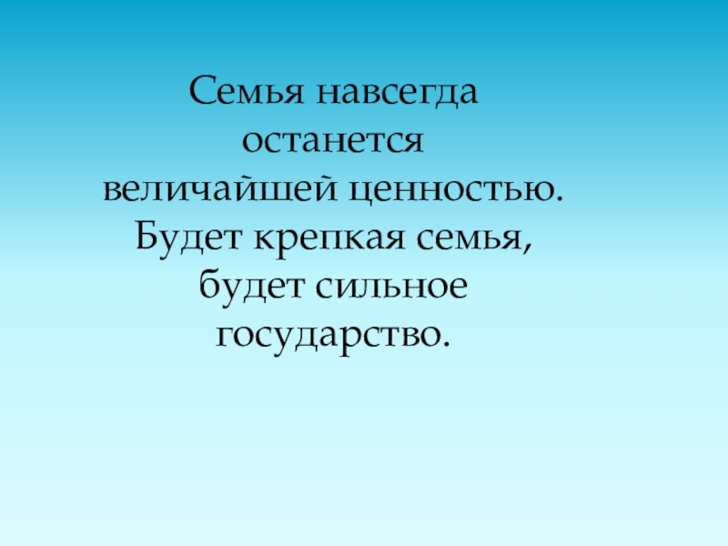 Семья навсегда останетсявеличайшей ценностью.Будет крепкая семья, будет сильное государство.