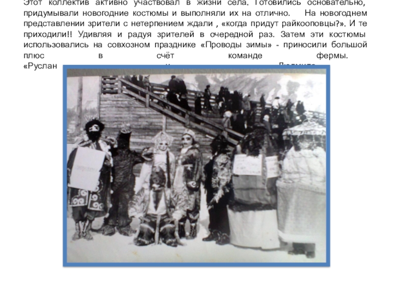 Слайд 17Этот коллектив активно участвовал в жизни села. Готовились основательно, придумывали новогодние