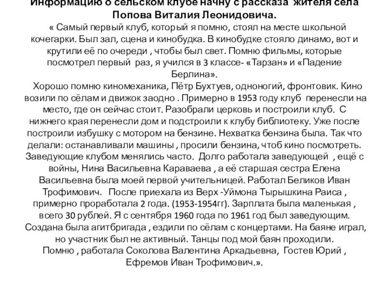 Информацию о сельском клубе начну с рассказа жителя села Попова Виталия
