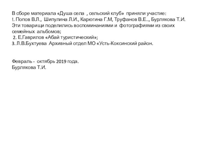 Слайд 34В сборе материала «Душа села , сельский клуб» приняли участие: