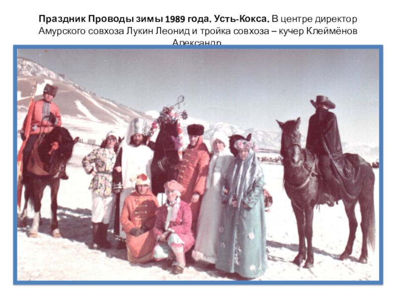 Слайд 24Праздник Проводы зимы 1989 года. Усть-Кокса. В центре директор Амурского совхоза