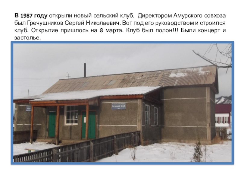 В 1987 году открыли новый сельский клуб. Директором Амурского совхоза был