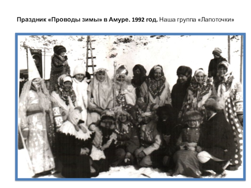 Слайд 25Праздник «Проводы зимы» в Амуре. 1992 год. Наша группа «Лапоточки»