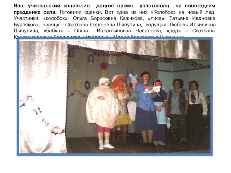 Слайд 26Наш учительский коллектив долгое время участвовал на новогоднем празднике села. Готовили