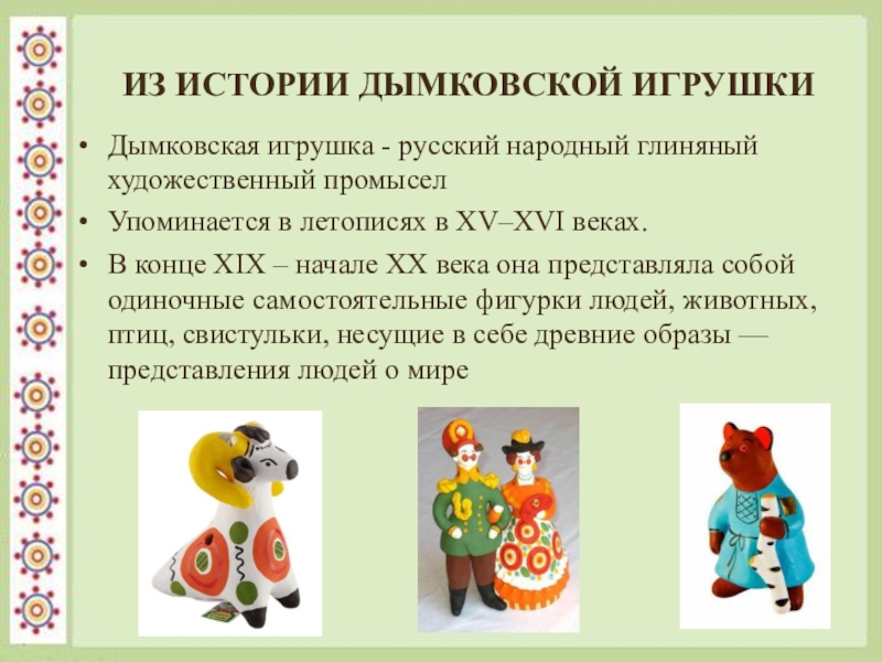 ИЗ ИСТОРИИ ДЫМКОВСКОЙ ИГРУШКИ