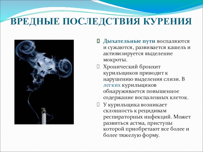 Слайд 12ВРЕДНЫЕ ПОСЛЕДСТВИЯ КУРЕНИЯ
