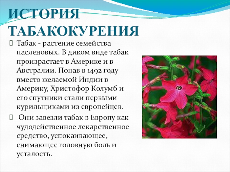 Слайд 3ИСТОРИЯ ТАБАКОКУРЕНИЯ