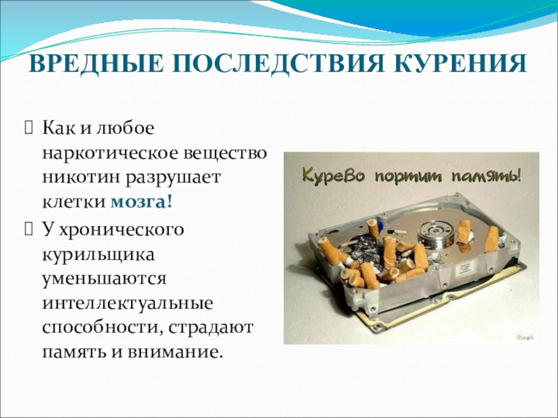 Как и любое наркотическое вещество никотин разрушает клетки мозга!