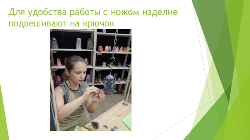 Слайд 8Для удобства работы с ножом изделие подвешивают на крючок