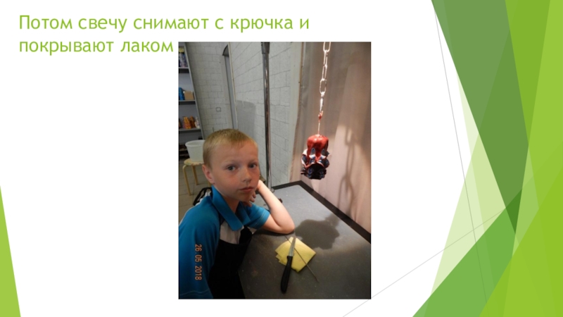Слайд 13Потом свечу снимают с крючка и покрывают лаком
