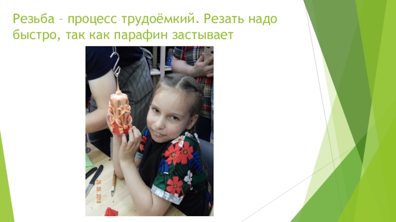 Слайд 11Резьба – процесс трудоёмкий. Резать надо быстро, так как парафин застывает