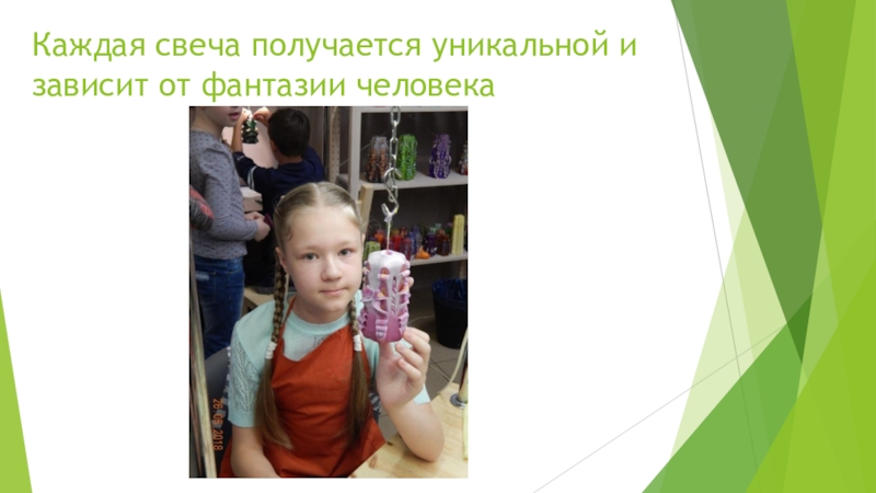 Слайд 10Каждая свеча получается уникальной и зависит от фантазии человека