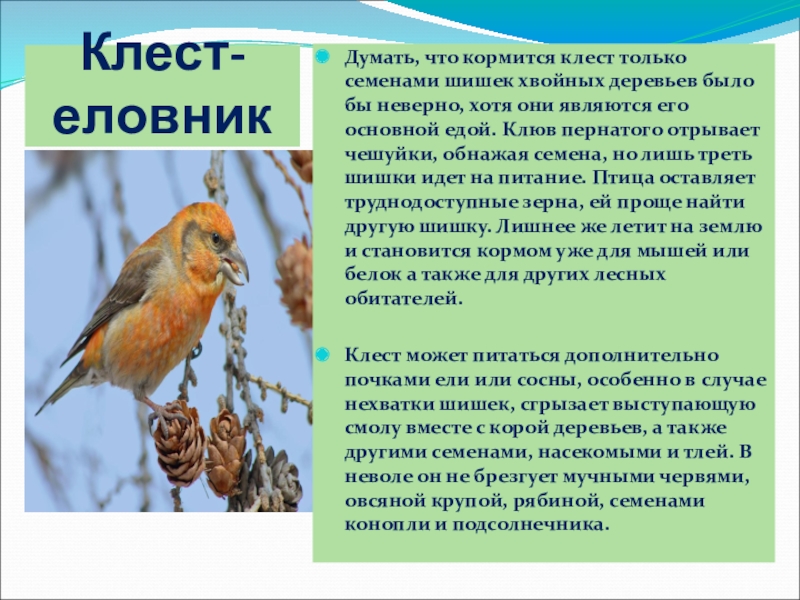 Думать, что кормится клест только семенами шишек хвойных деревьев было бы
