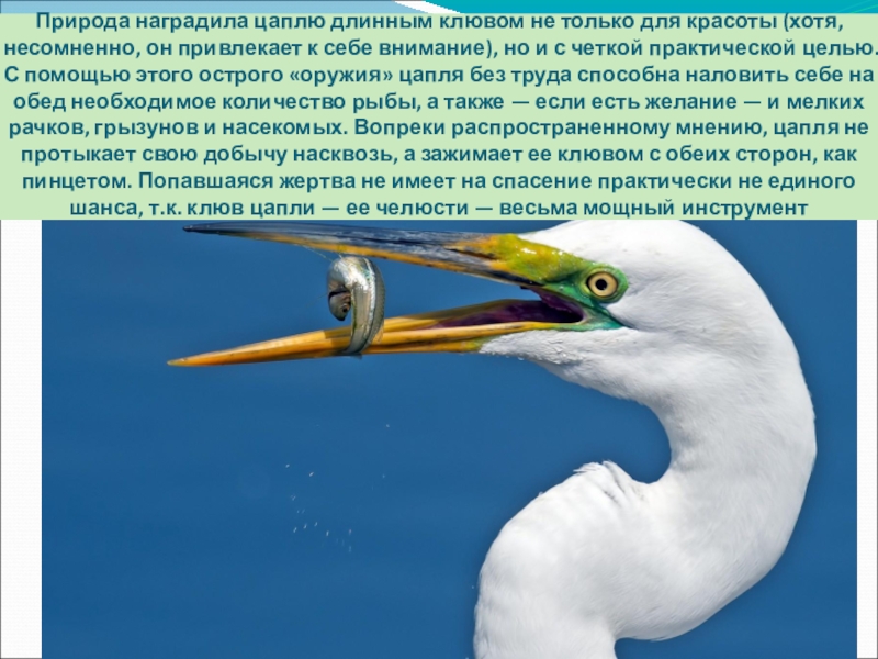 Слайд 11Природа наградила цаплю длинным клювом не только для красоты (хотя, несомненно,