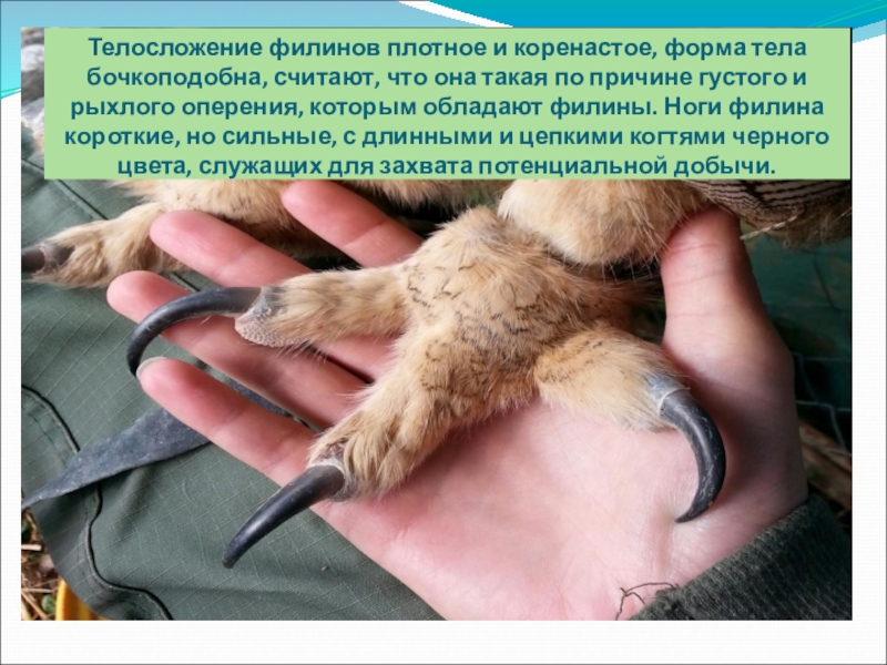 Слайд 8Телосложение филинов плотное и коренастое, форма тела бочкоподобна, считают, что она