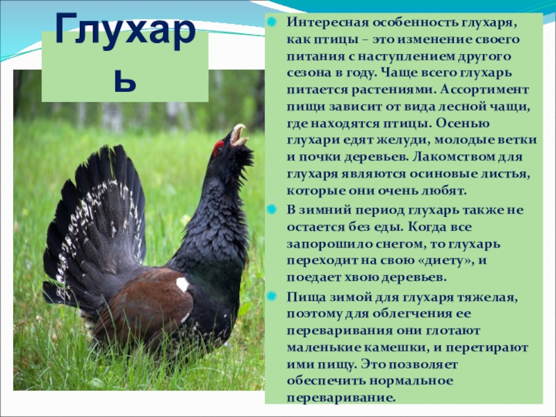 Интересная особенность глухаря, как птицы – это изменение своего питания с