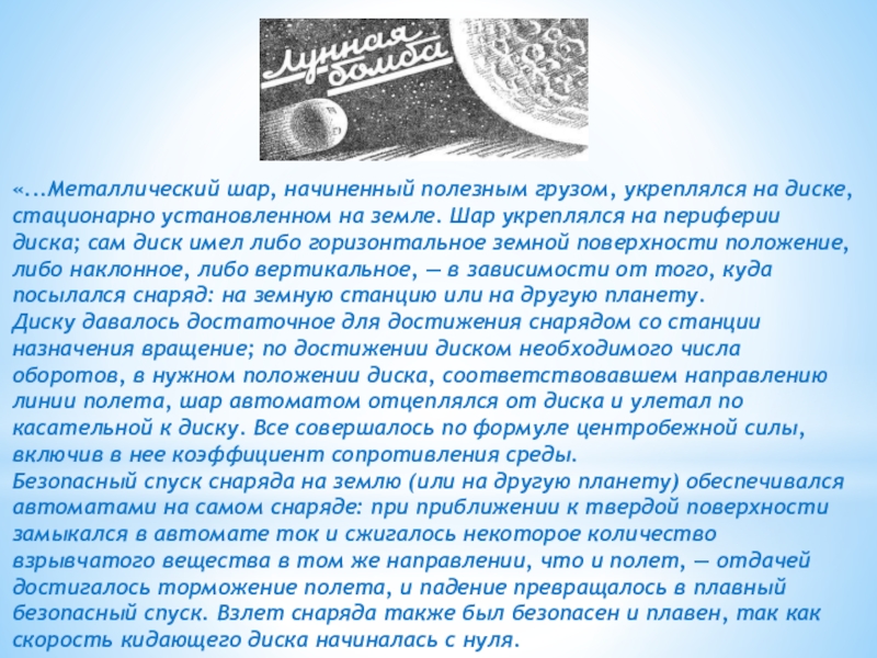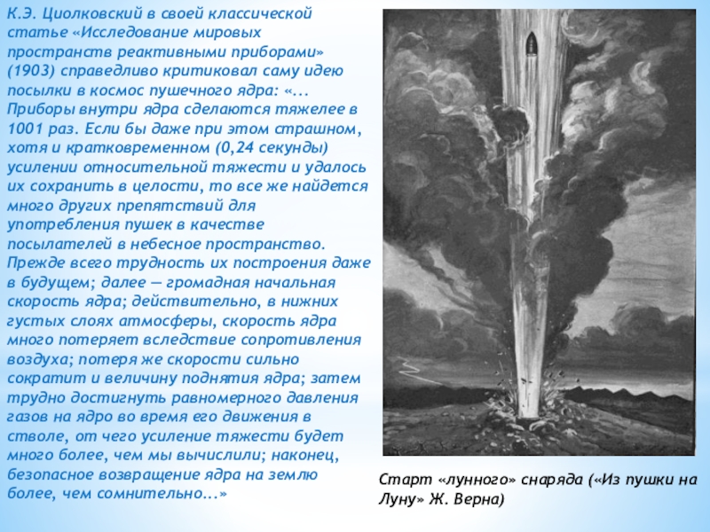 Старт «лунного» снаряда («Из пушки на Луну» Ж. Верна)