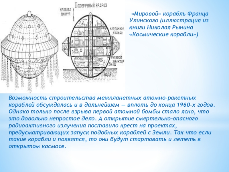 «Мировой» корабль Франца Улинского (иллюстрация из книги Николая Рынина «Космические корабли»)