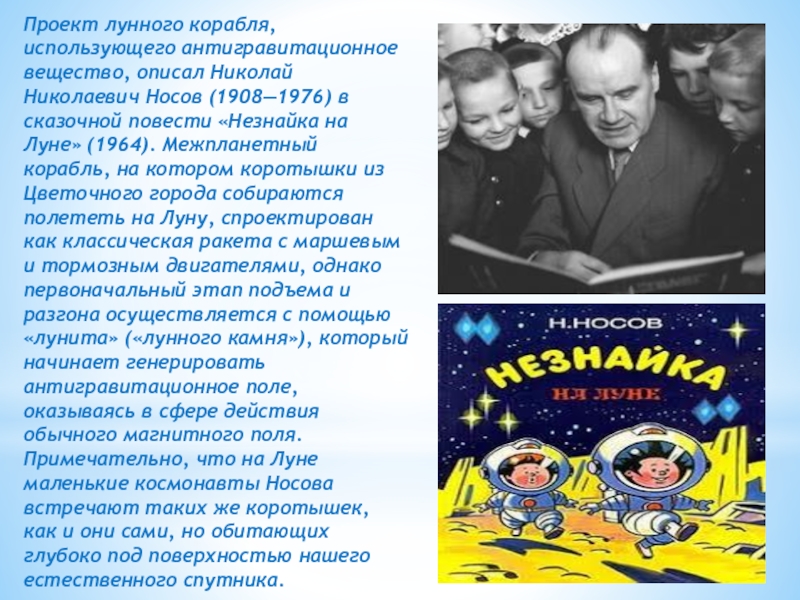 Проект лунного корабля, использующего антигравитационное вещество