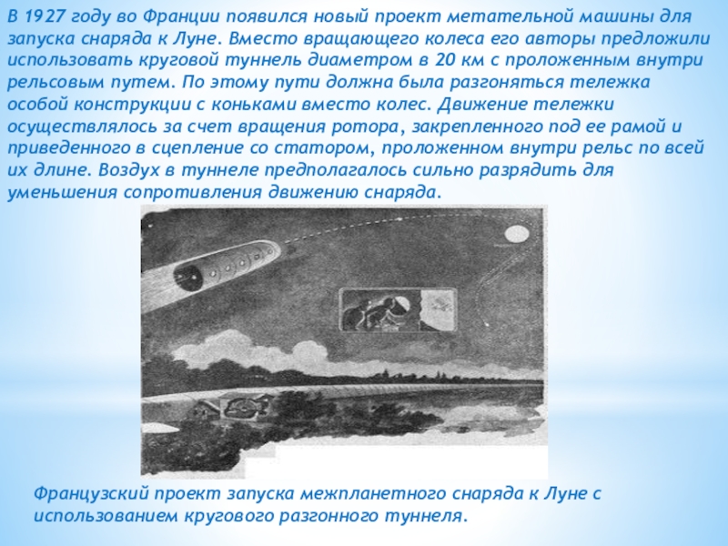 Французский проект запуска межпланетного снаряда к Луне с использованием кругового разгонного туннеля.