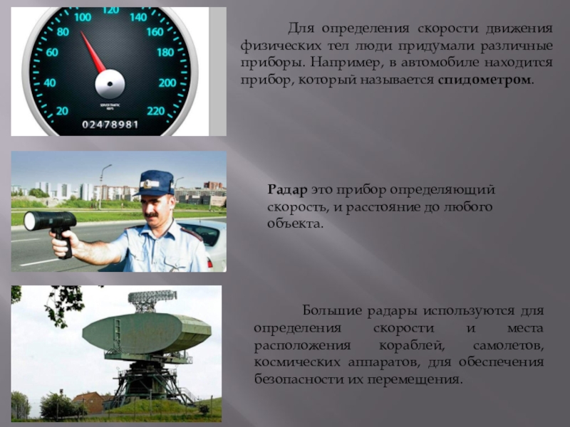 Радар это прибор определяющий скорость, и расстояние до любого объекта.