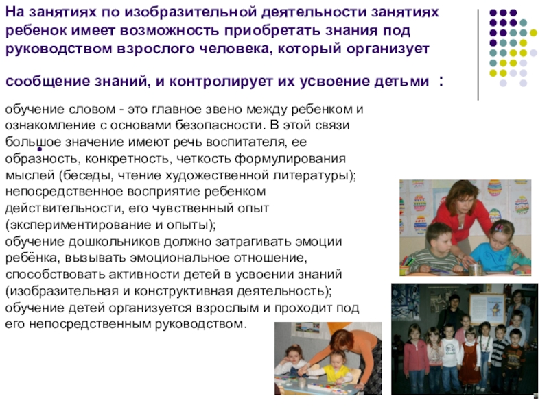 обучение детей организуется взрослым и проходит под его непосредственным руководством.