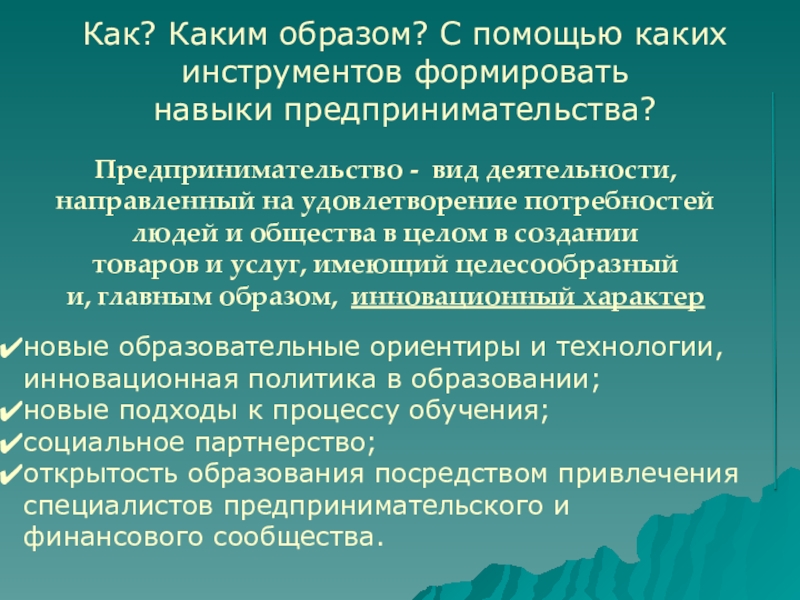 открытость образования посредством привлечения специалистов предпринимательского и финансового сообщества.