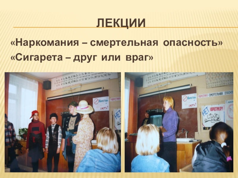 лекции«Наркомания – смертельная опасность»«Сигарета – друг или враг»