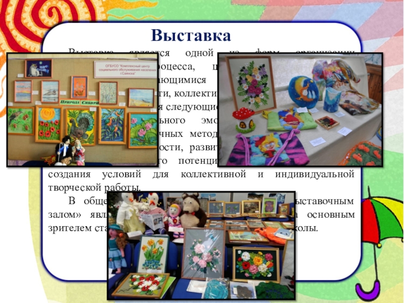 Выставка является одной из форм организации образовательного процесса, целью которой является