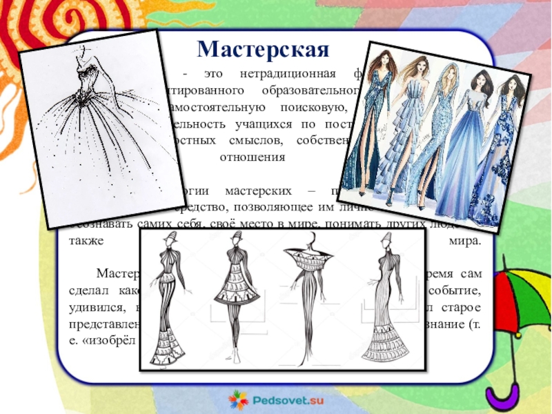 Мастерская - это нетрадиционная форма организации личностно-ориентированного образовательного процесса. Она предполагает