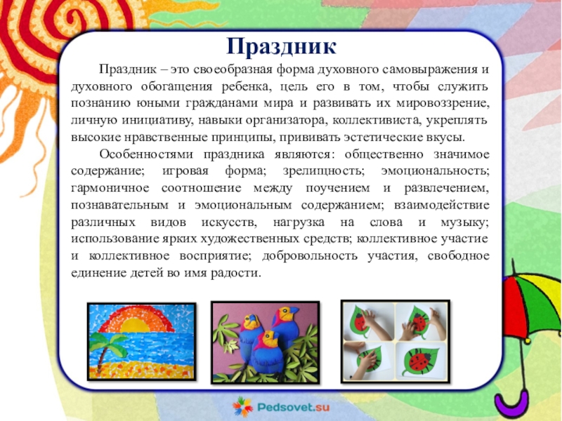 Праздник – это своеобразная форма духовного самовыражения и духовного обогащения ребенка,