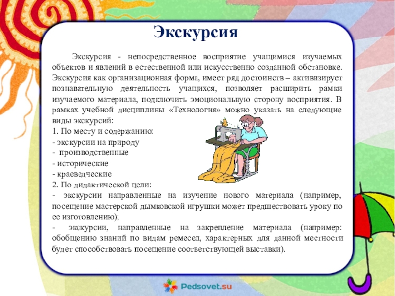 Экскурсия - непосредственное восприятие учащимися изучаемых объектов и явлений в
