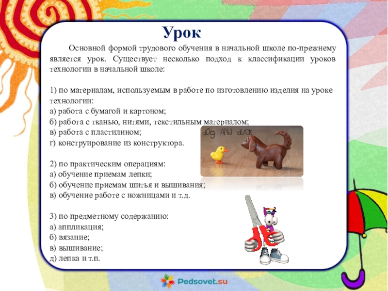 Основной формой трудового обучения в начальной школе по-прежнему является урок. Существует