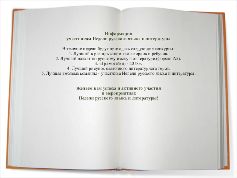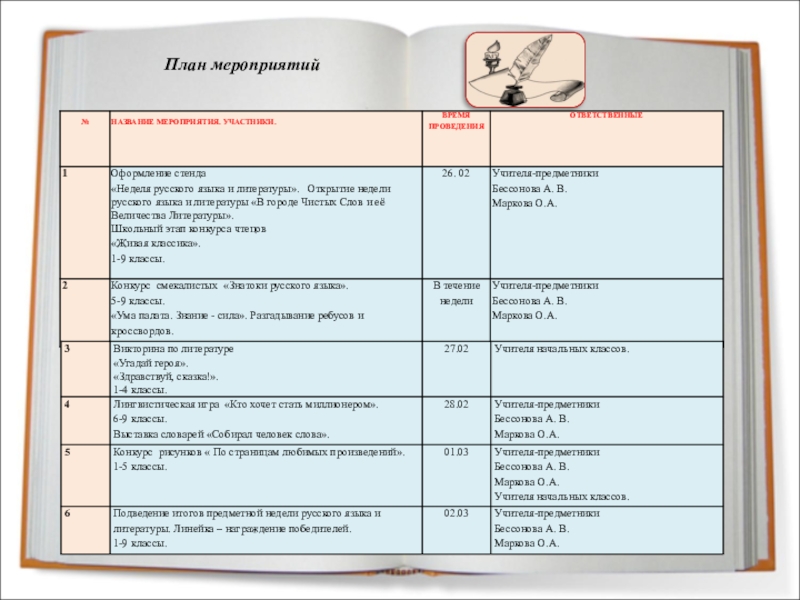 Провести в каждом классе мероприятия, содействующие развитию познавательной деятельности учащихся, расширению знаний по русскому языку и литературе, формированию творческих способностей;
