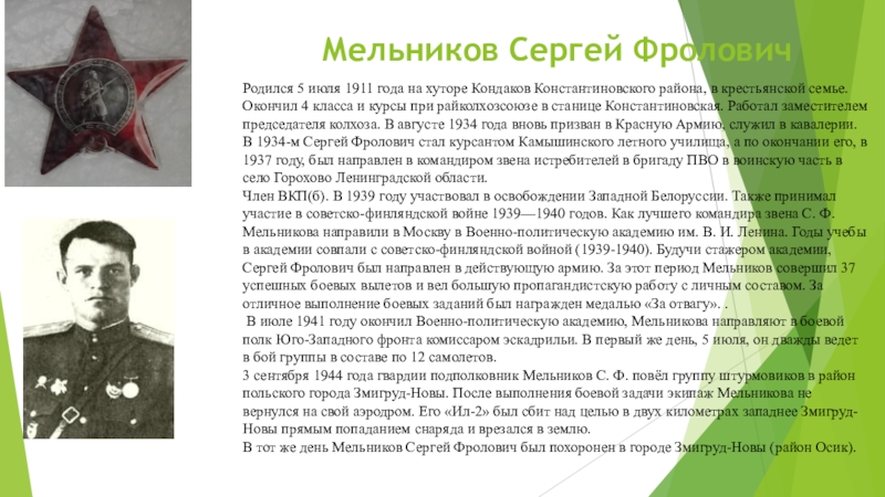 Родился 9 ноября 1914 года - станица Николаевская Константиновского