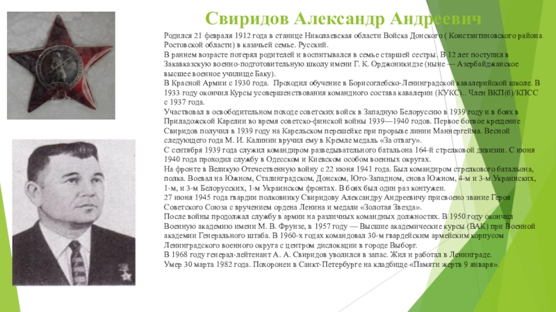 27 июня 1945 года гвардии полковнику Свиридову Александру Андреевичу присвоено звание Героя Советского Союза с вручением ордена Ленина и медали «Золотая Звезда».