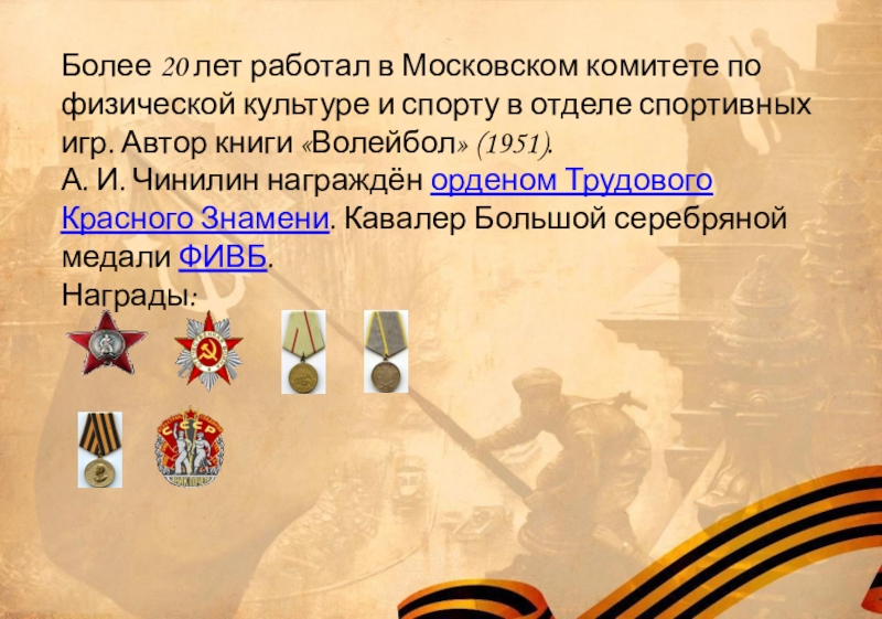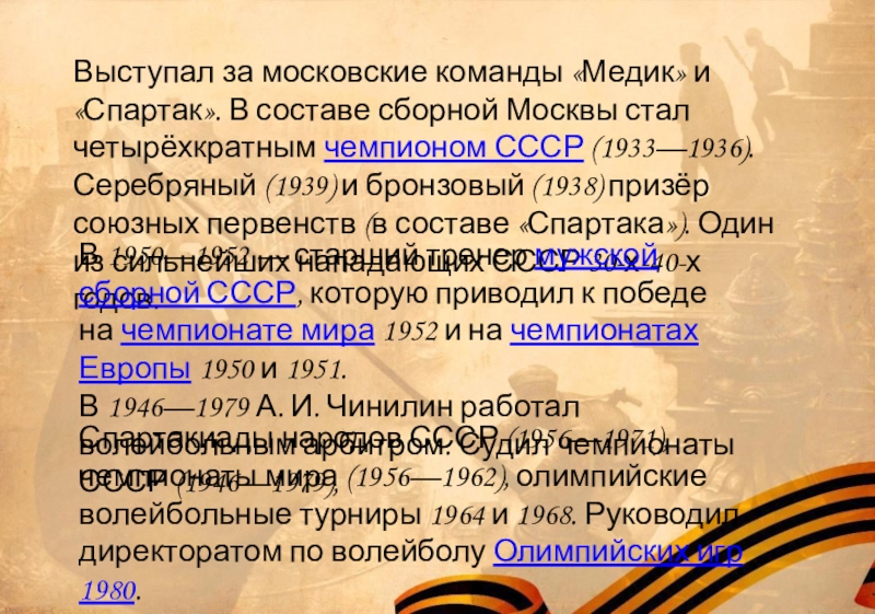 В 1946—1979 А. И. Чинилин работал волейбольным арбитром. Судил чемпионаты СССР (1946—1979),