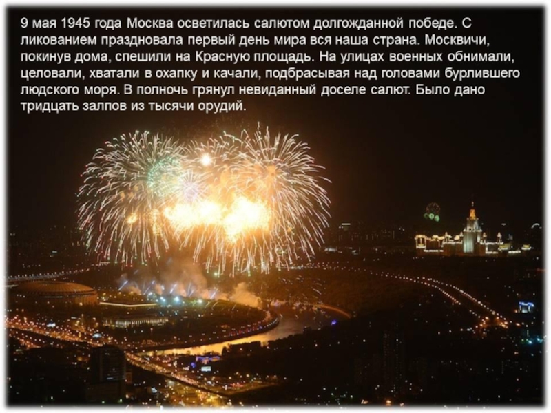 Презентация, доклад ГЛАВНЫЙ ПРАЗДНИК СТРАНЫ на тему: празднование Дня Победы (патриотическое воспитание детей)