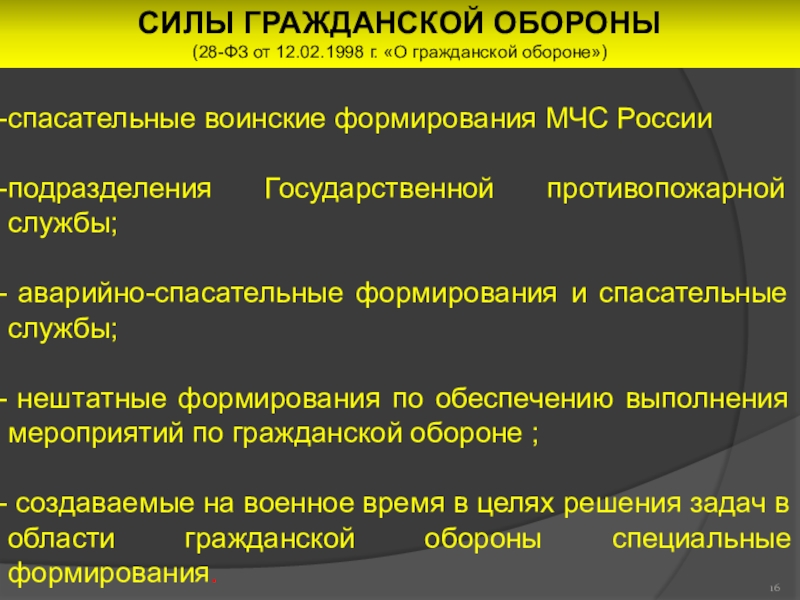 (28-ФЗ от 12.02.1998 г. «О гражданской обороне»)
