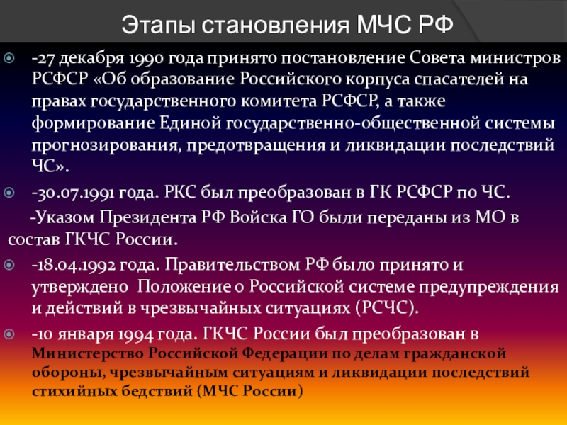 «О единой государственной системе предупреждения и ликвидации чрезвычайных ситуаций»