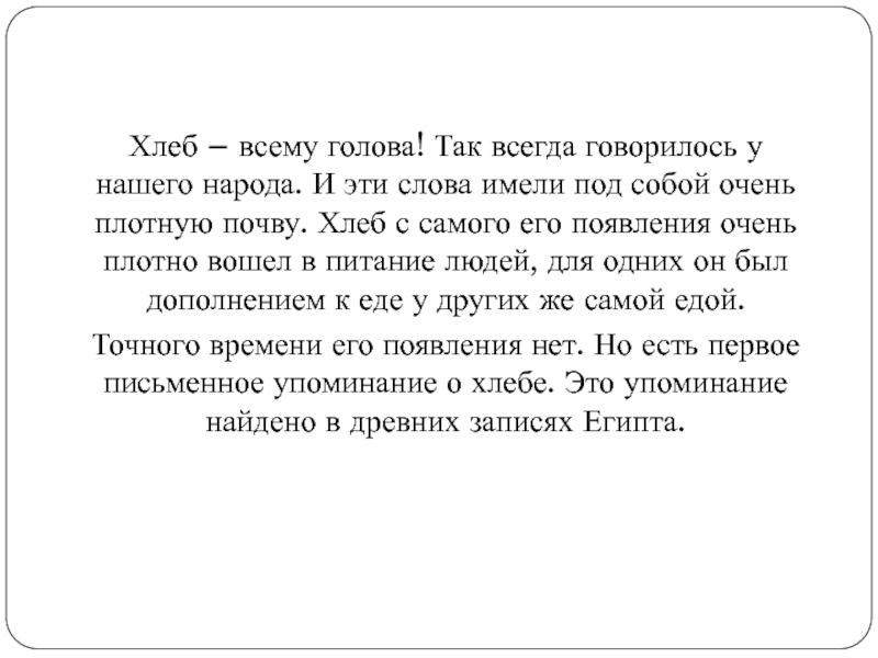 эти слова имели под собой очень плотную почву. Хлеб с самого его появления очень плотно вошел в питание людей, для одних он был дополнением к еде у других же самой едой.