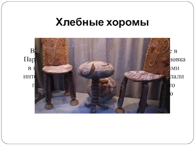 Хлебные хоромыВ Доме-музее Сальвадора Дали на Монмартре в Париже существует хлебная комната. Вся обстановка в ней, начиная
