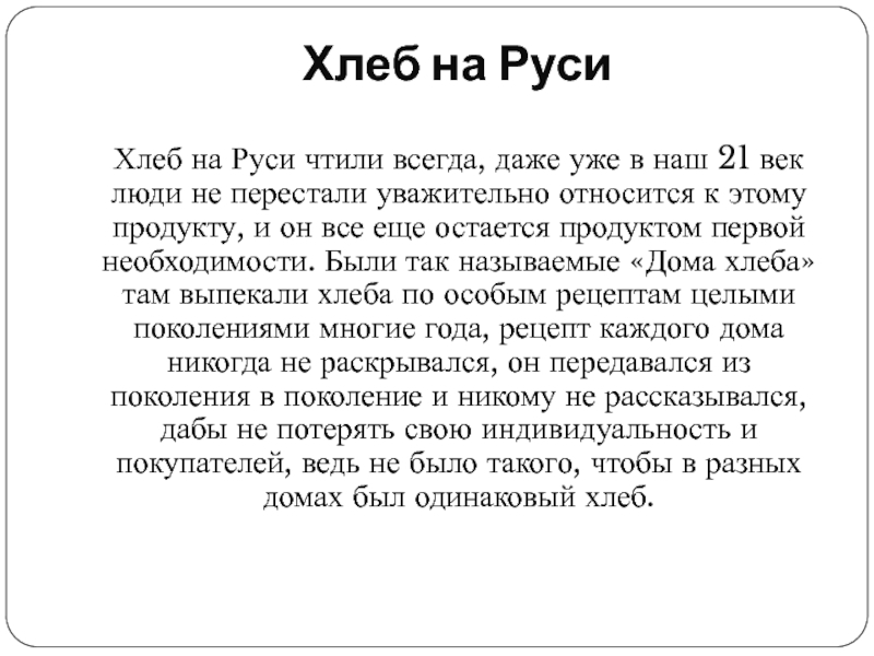 Хлеб на РусиХлеб на Руси чтили всегда, даже уже в наш 21 век люди не перестали уважительно