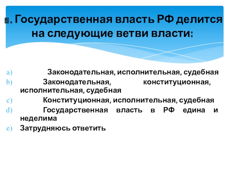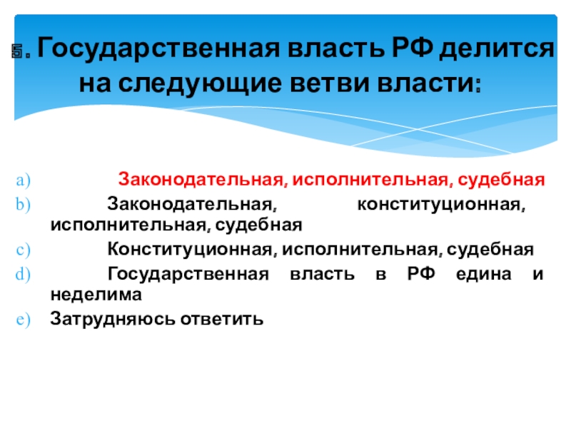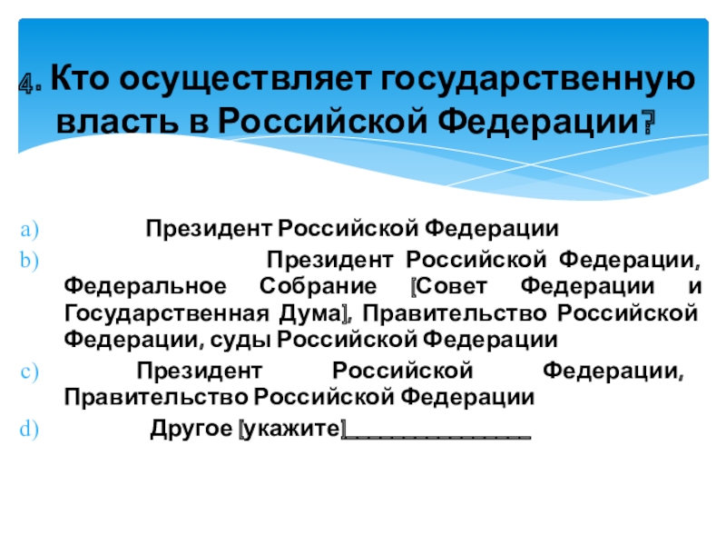 4. Кто осуществляет государственную власть в Российской Федерации?