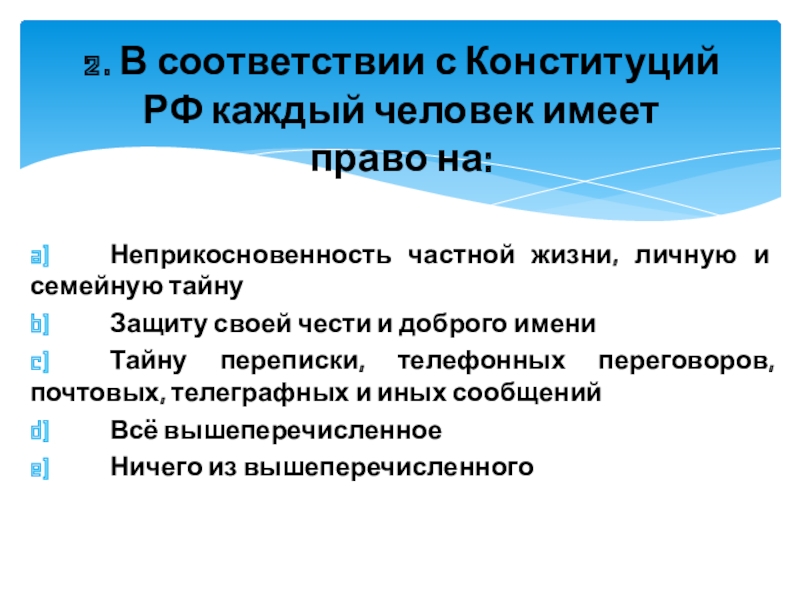 3. Основные права и свободы человека и гражданина принадлежат каждому: