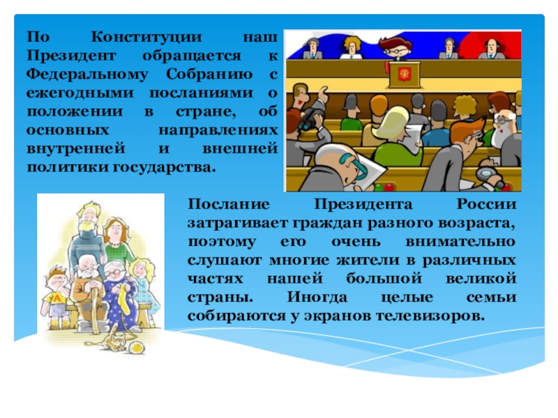 Послание Президента России затрагивает граждан разного возраста, поэтому его очень внимательно слушают многие жители в различных частях нашей большой великой страны. Иногда целые семьи собираются у экранов телевизоров.