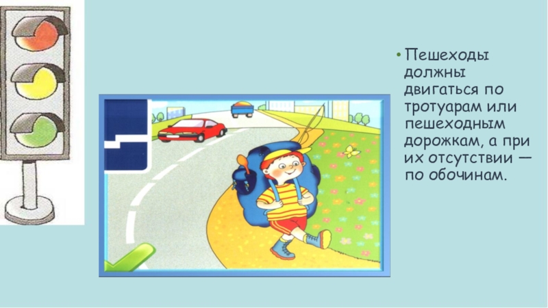 Слайд 29Пешеходы должны двигаться по тротуарам или пешеходным дорожкам, а при их